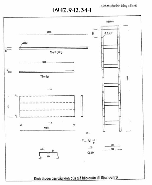 - Đợt: Mỗi bộ giá sắt theo tiêu chuẩn quốc gia TCVN 9253:2012 có 6 đợt chia làm 5 khoang, tùy theo yêu cầu của khách hang, mà độ dày của đợt là khác nhau, thấp nhất là 0.6 mm và có thanh đỡ nằm chính giữa, tăng thêm sự chắc chắn cho đợt